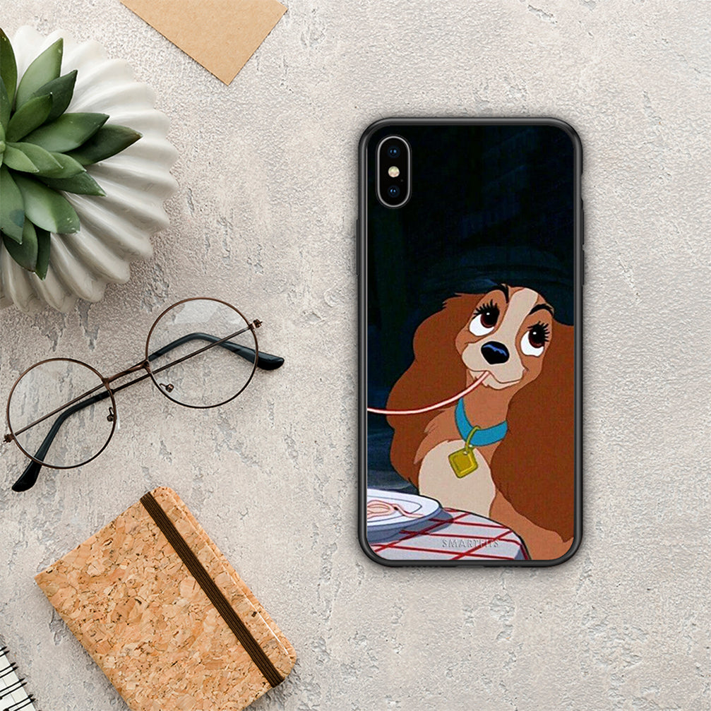 Θήκη Αγίου Βαλεντίνου iPhone Xs Max Lady And Tramp 2 από τη Smartfits με σχέδιο στο πίσω μέρος και μαύρο περίβλημα | iPhone Xs Max Lady And Tramp 2 case with colorful back and black bezels