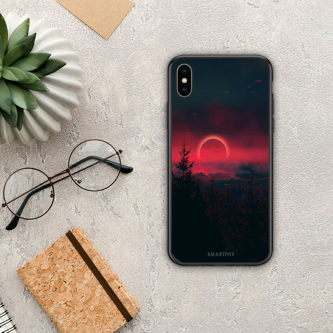 Θήκη iPhone Xs Max Sunset Tropic από τη Smartfits με σχέδιο στο πίσω μέρος και μαύρο περίβλημα | iPhone Xs Max Sunset Tropic case with colorful back and black bezels