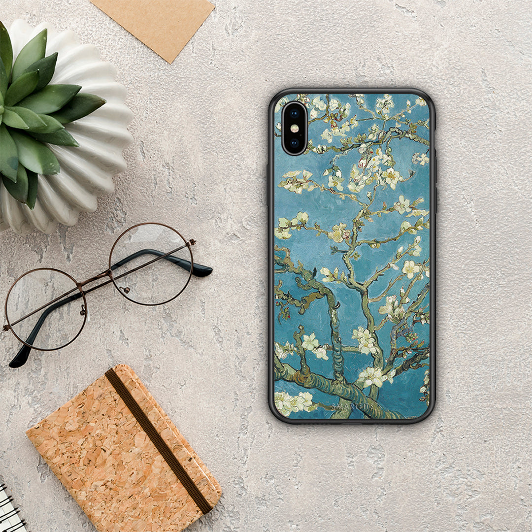 Θήκη iPhone Xs Max White Blossoms από τη Smartfits με σχέδιο στο πίσω μέρος και μαύρο περίβλημα | iPhone Xs Max White Blossoms case with colorful back and black bezels