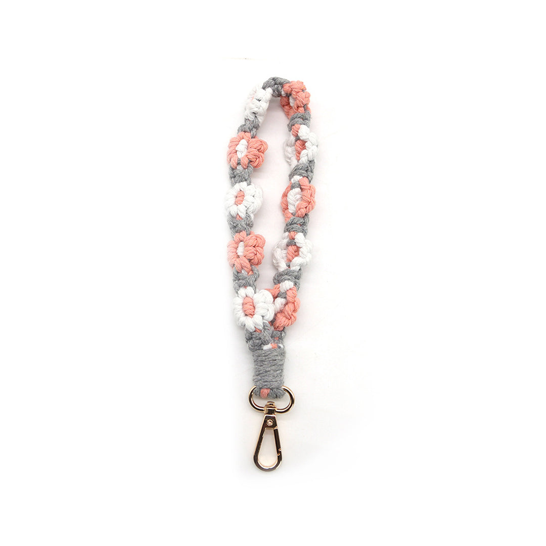 Macramé Floral Phone Strap Short Version - Γκρι / Ροζ