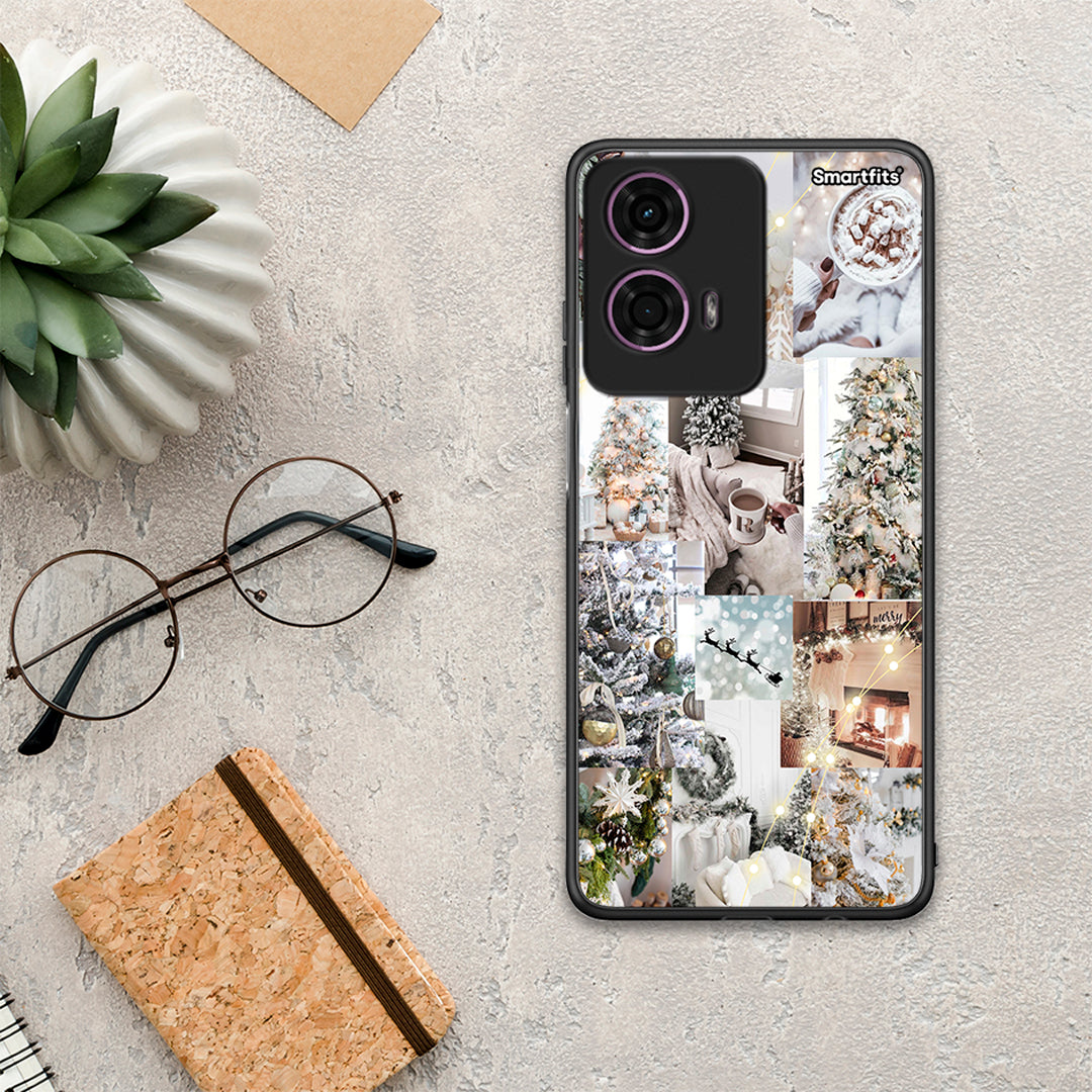 Θήκη Motorola G24 White Christmas από τη Smartfits με σχέδιο στο πίσω μέρος και μαύρο περίβλημα | Motorola G24 White Christmas case with colorful back and black bezels
