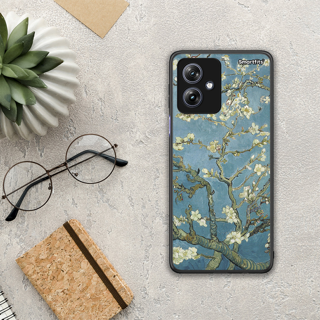 Θήκη Motorola Moto G54 White Blossoms από τη Smartfits με σχέδιο στο πίσω μέρος και μαύρο περίβλημα | Motorola Moto G54 White Blossoms case with colorful back and black bezels