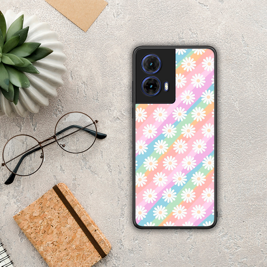 Θήκη Motorola Moto G85 White Daisies από τη Smartfits με σχέδιο στο πίσω μέρος και μαύρο περίβλημα | Motorola Moto G85 White Daisies case with colorful back and black bezels