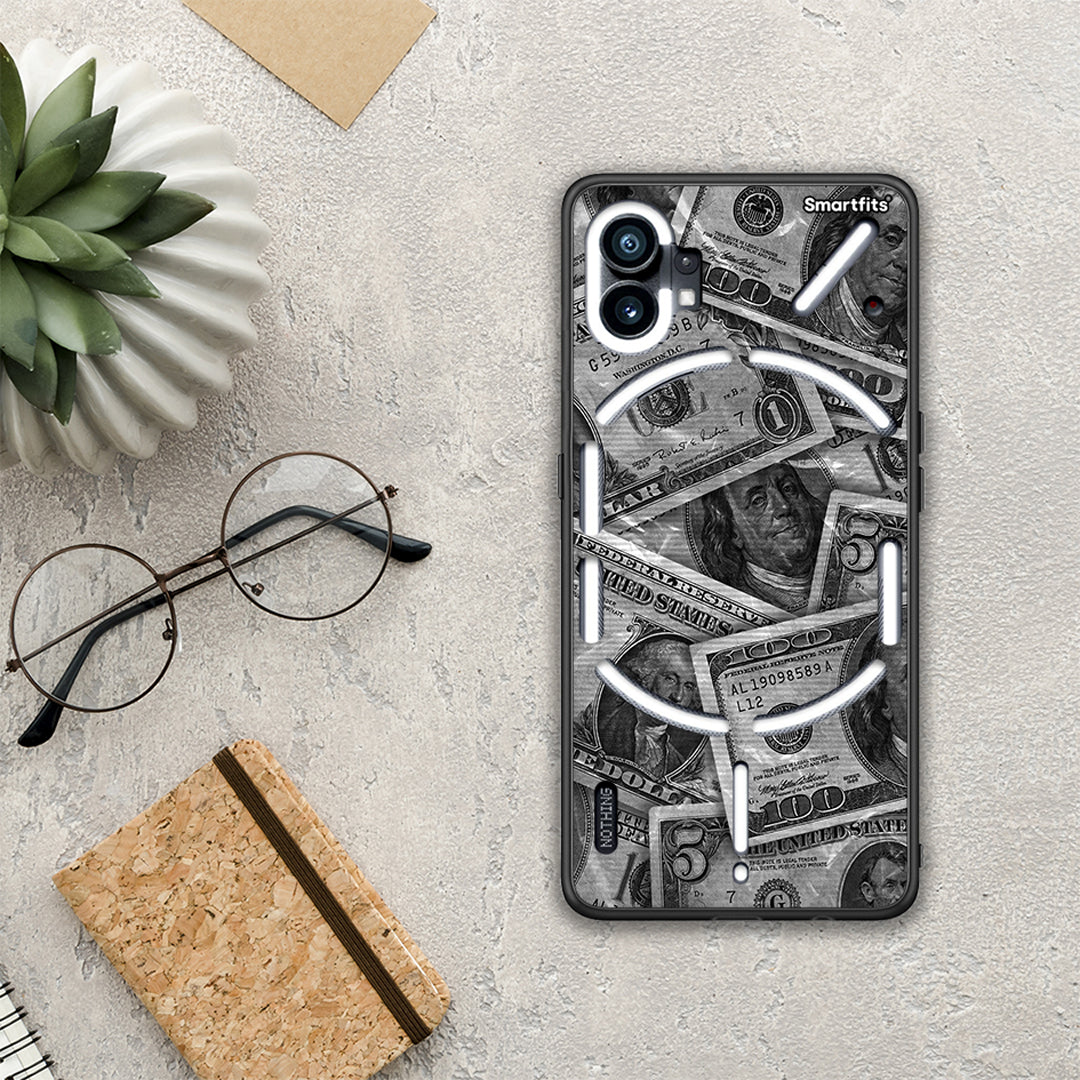 Θήκη Nothing Phone 1 Money Dollars από τη Smartfits με σχέδιο στο πίσω μέρος και μαύρο περίβλημα | Nothing Phone 1 Money Dollars case with colorful back and black bezels