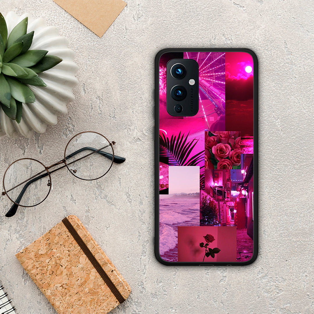Θήκη Αγίου Βαλεντίνου OnePlus 9 Collage Red Roses από τη Smartfits με σχέδιο στο πίσω μέρος και μαύρο περίβλημα | OnePlus 9 Collage Red Roses case with colorful back and black bezels