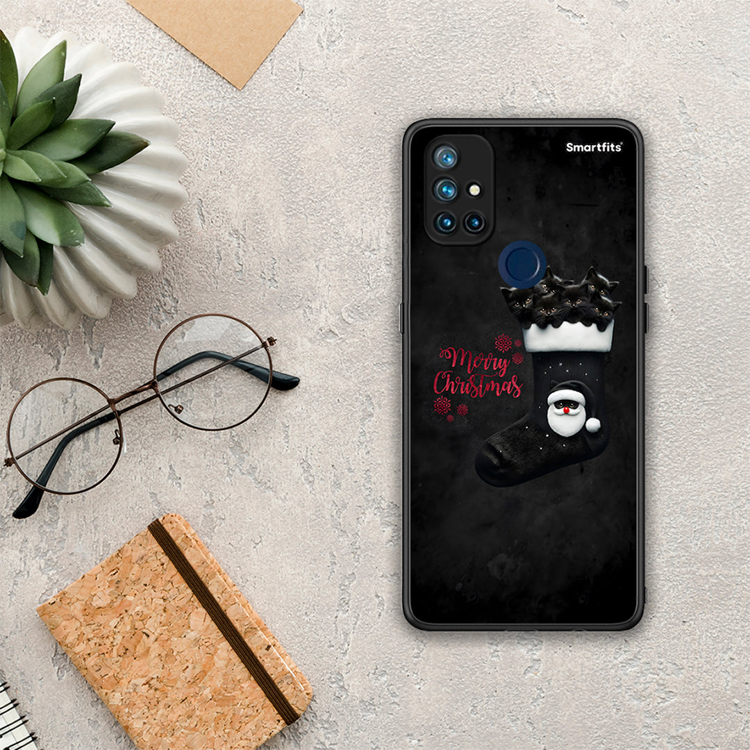 Θήκη OnePlus Nord N10 5G Merry Cat Christmas από τη Smartfits με σχέδιο στο πίσω μέρος και μαύρο περίβλημα | OnePlus Nord N10 5G Merry Cat Christmas case with colorful back and black bezels