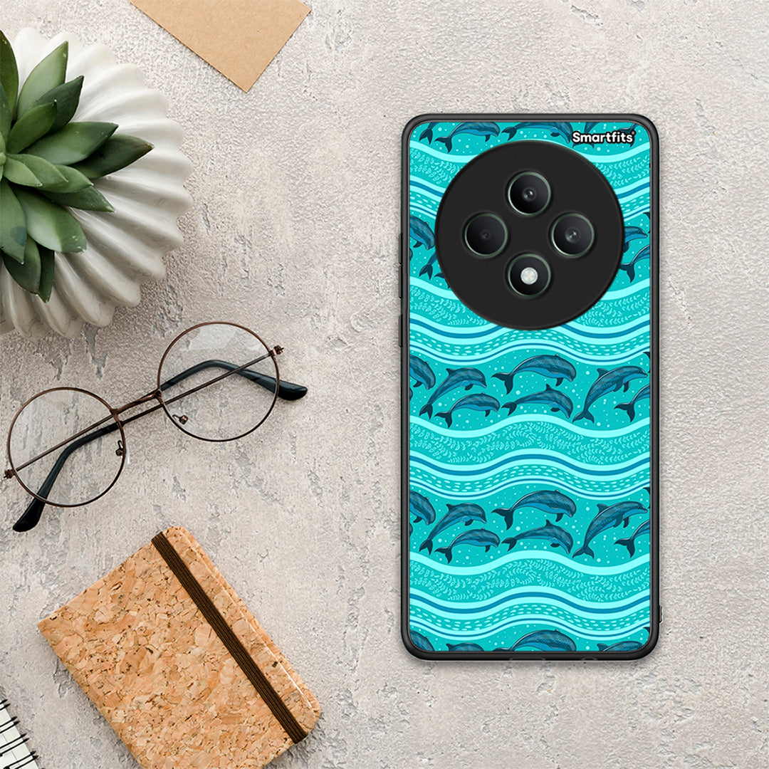 Θήκη Oppo Reno12 F 5G / FS 5G Swimming Dolphins από τη Smartfits με σχέδιο στο πίσω μέρος και μαύρο περίβλημα | Oppo Reno12 F 5G / FS 5G Swimming Dolphins case with colorful back and black bezels