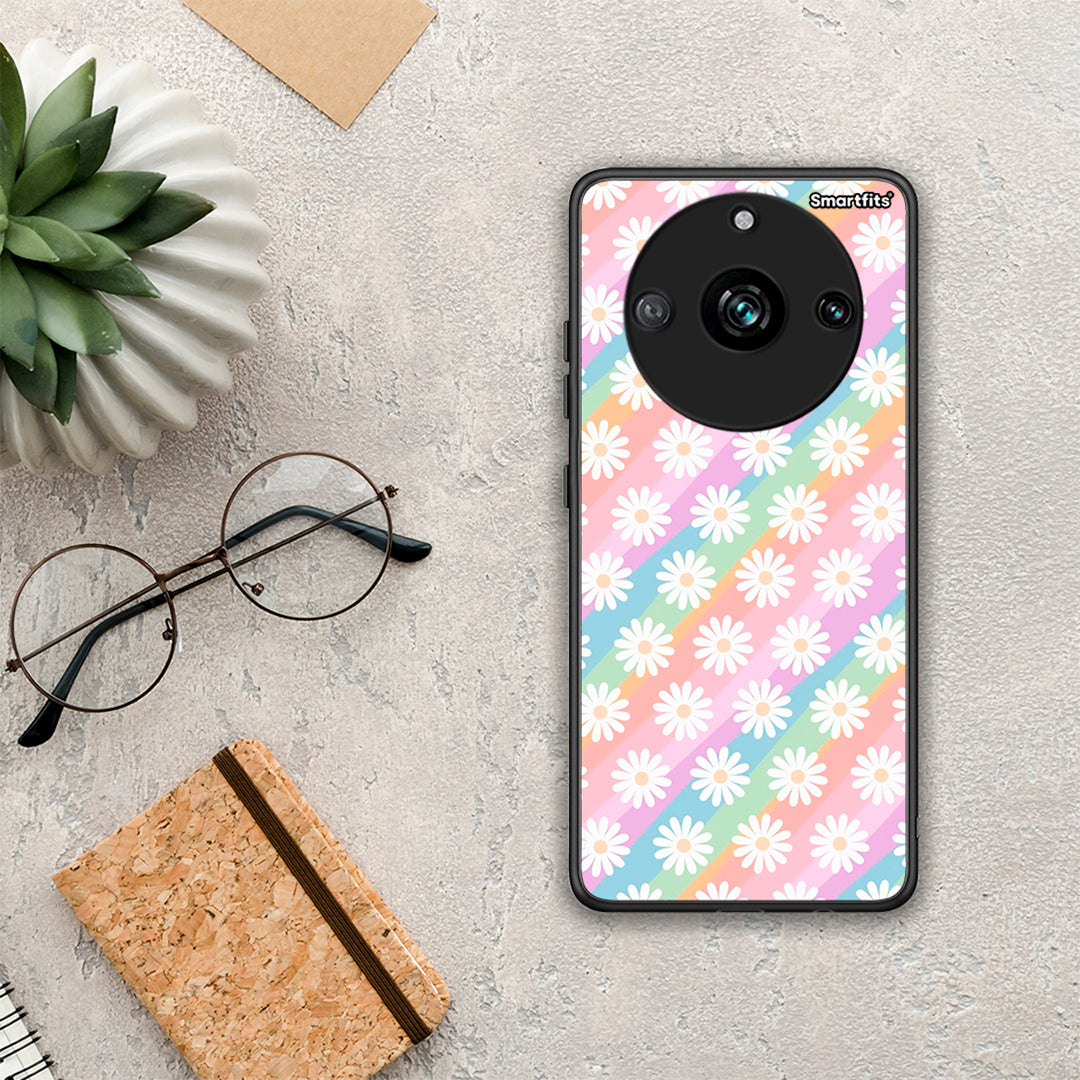 Θήκη Realme 11 Pro White Daisies από τη Smartfits με σχέδιο στο πίσω μέρος και μαύρο περίβλημα | Realme 11 Pro White Daisies case with colorful back and black bezels