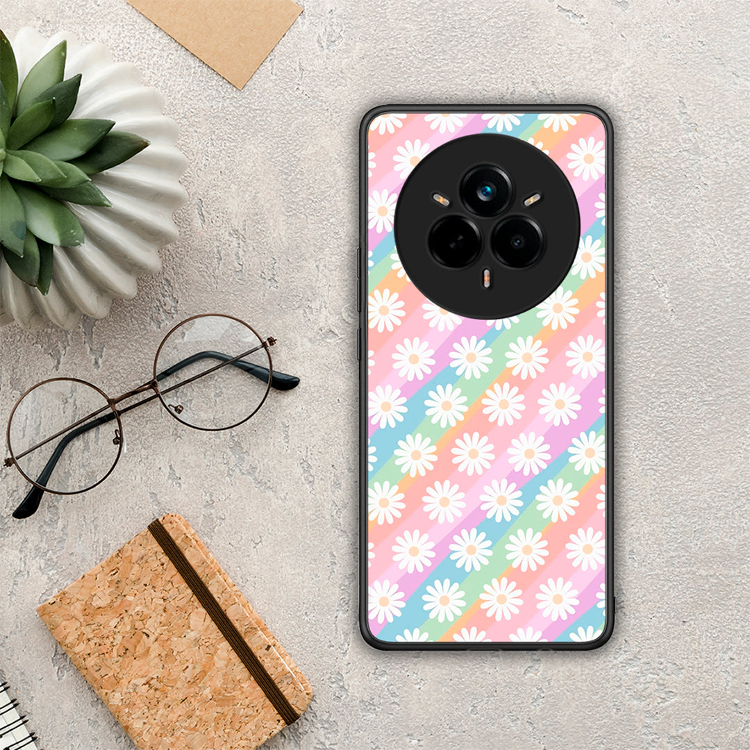 Θήκη Realme 14 Pro White Daisies από τη Smartfits με σχέδιο στο πίσω μέρος και μαύρο περίβλημα | Realme 14 Pro White Daisies case with colorful back and black bezels