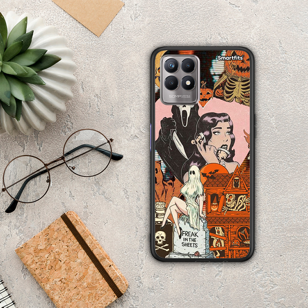 Θήκη Realme 8i Halloween Collage από τη Smartfits με σχέδιο στο πίσω μέρος και μαύρο περίβλημα | Realme 8i Halloween Collage case with colorful back and black bezels