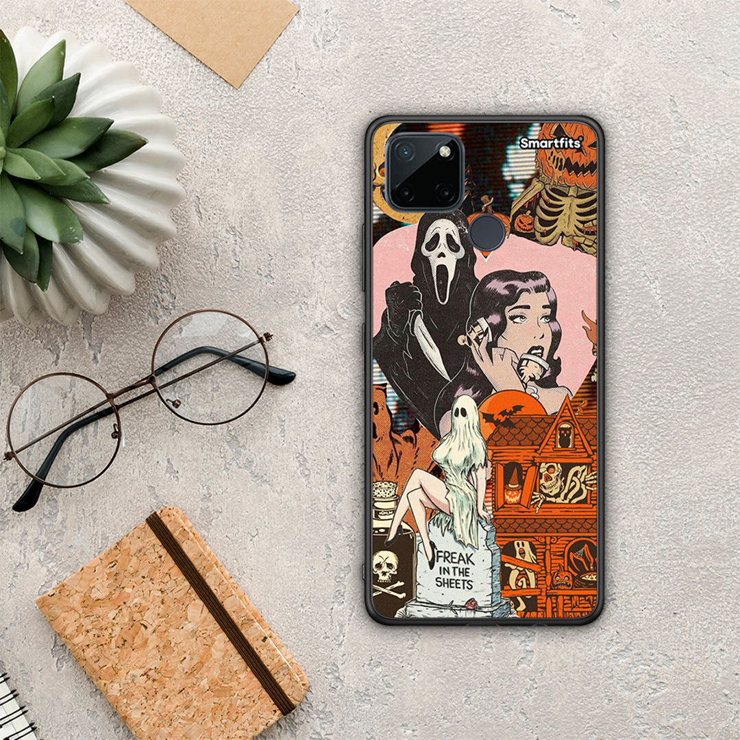 Θήκη Realme C21Y / C25Y / 7i (Global) Halloween Collage από τη Smartfits με σχέδιο στο πίσω μέρος και μαύρο περίβλημα | Realme C21Y / C25Y / 7i (Global) Halloween Collage case with colorful back and black bezels