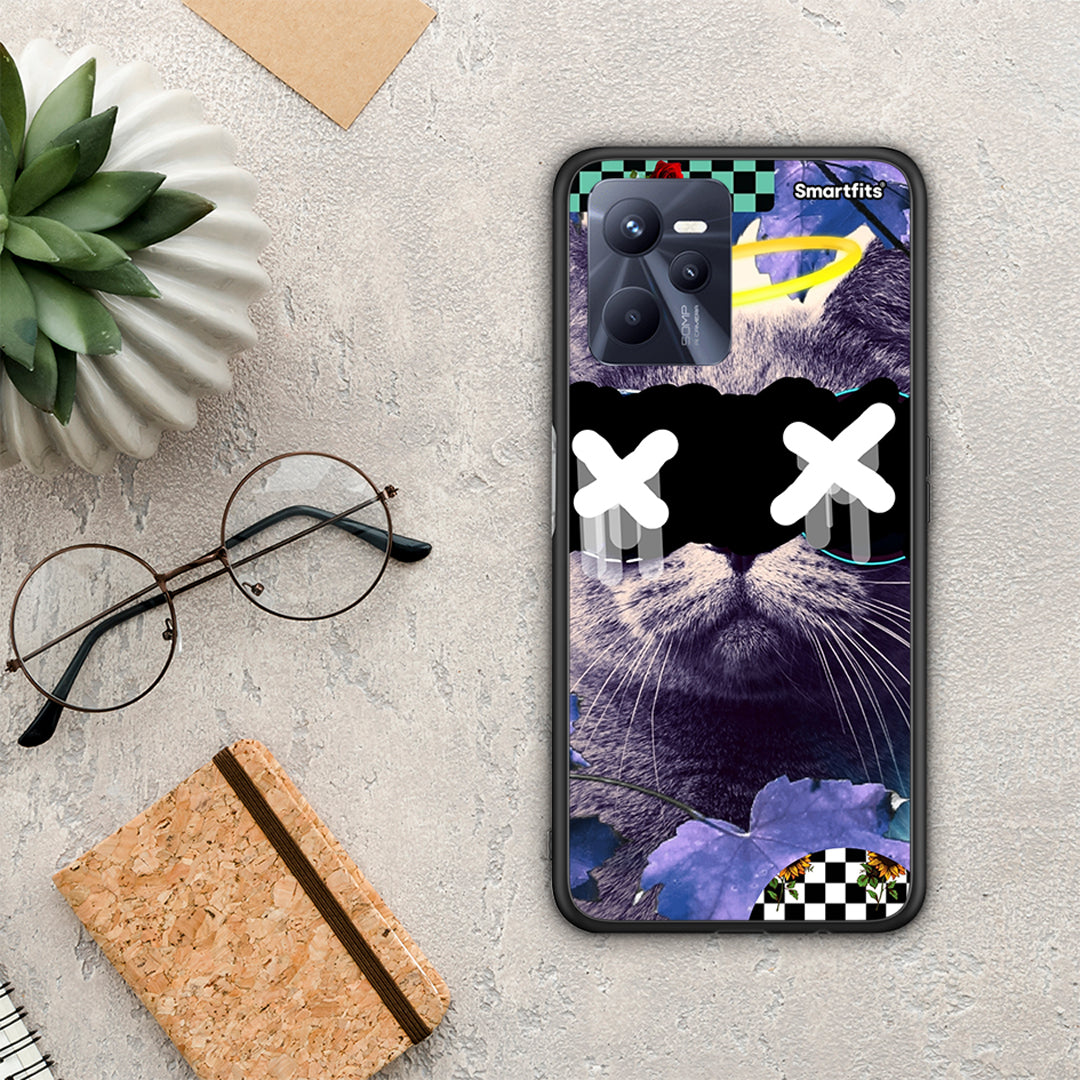Θήκη Realme C35 Cat Collage από τη Smartfits με σχέδιο στο πίσω μέρος και μαύρο περίβλημα | Realme C35 Cat Collage case with colorful back and black bezels