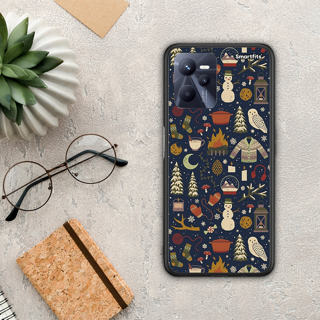 Θήκη Realme C35 Christmas Elements από τη Smartfits με σχέδιο στο πίσω μέρος και μαύρο περίβλημα | Realme C35 Christmas Elements case with colorful back and black bezels