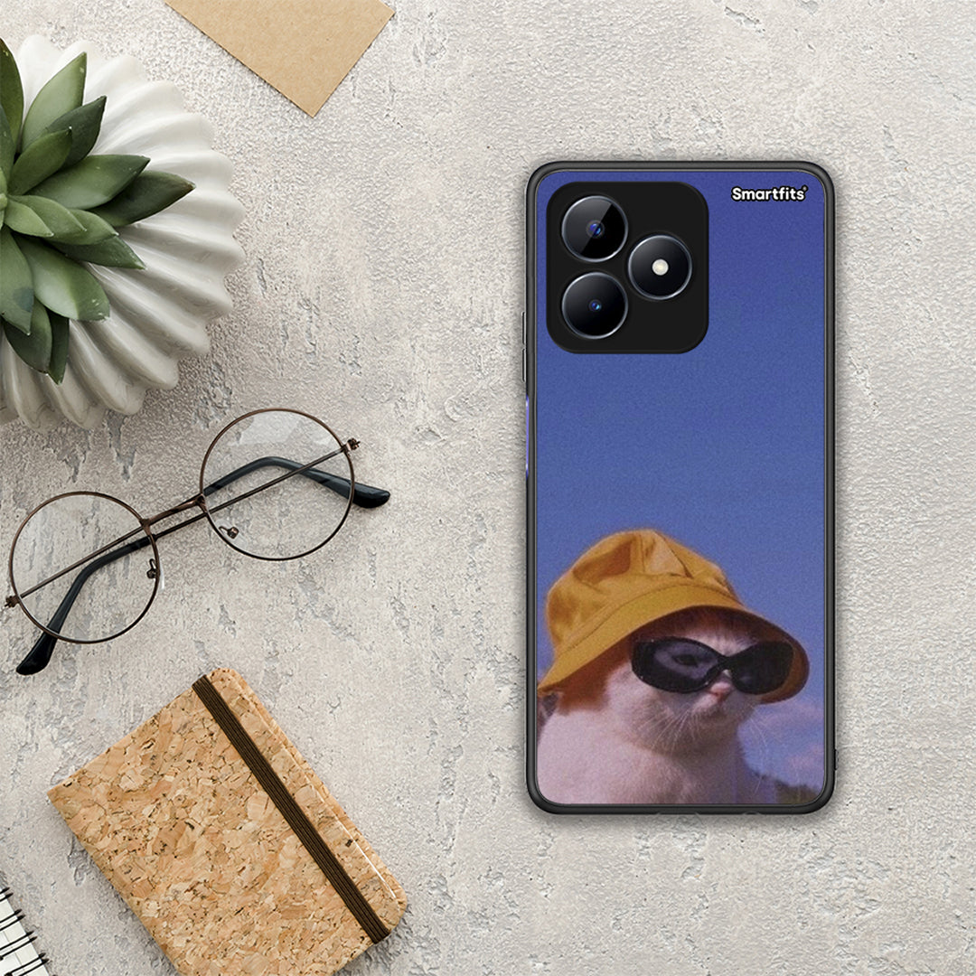 Θήκη Realme C51 Cat Diva από τη Smartfits με σχέδιο στο πίσω μέρος και μαύρο περίβλημα | Realme C51 Cat Diva case with colorful back and black bezels