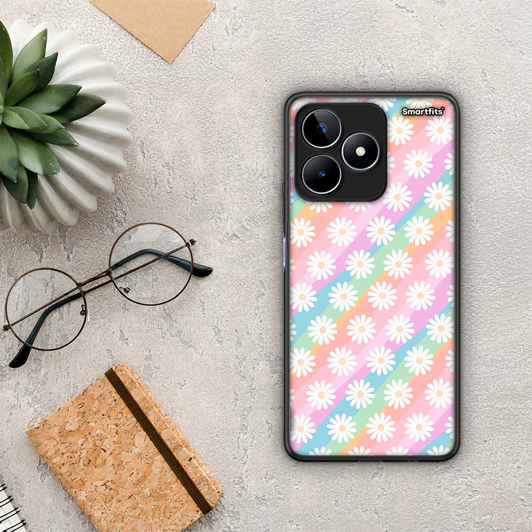 Θήκη Realme C53 White Daisies από τη Smartfits με σχέδιο στο πίσω μέρος και μαύρο περίβλημα | Realme C53 White Daisies case with colorful back and black bezels