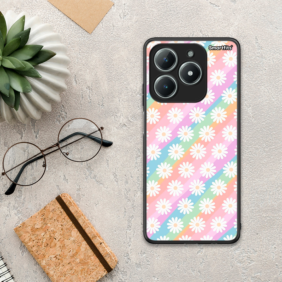 Θήκη Realme C63 4G White Daisies από τη Smartfits με σχέδιο στο πίσω μέρος και μαύρο περίβλημα | Realme C63 4G White Daisies case with colorful back and black bezels