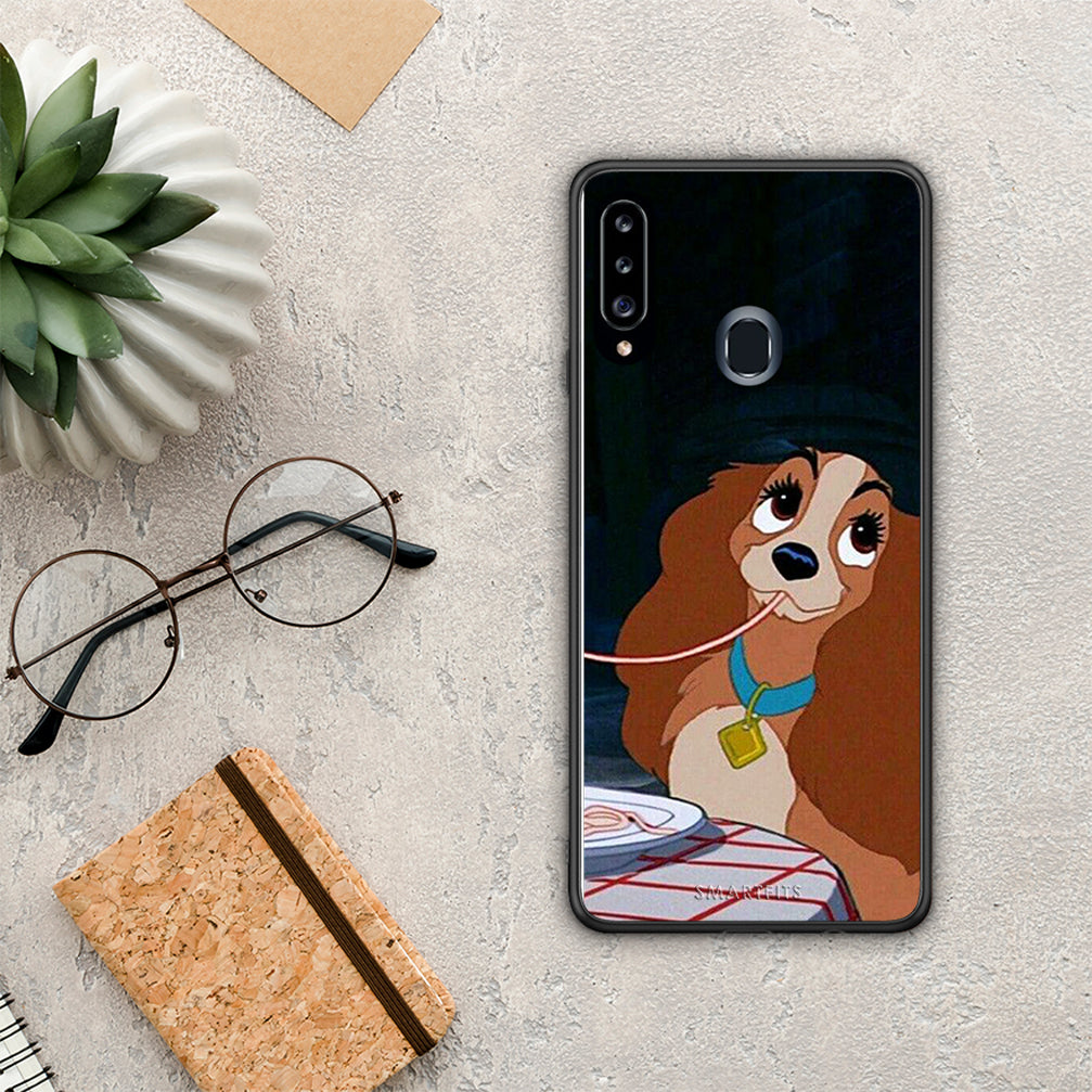 Θήκη Αγίου Βαλεντίνου Samsung Galaxy A20s Lady And Tramp 2 από τη Smartfits με σχέδιο στο πίσω μέρος και μαύρο περίβλημα | Samsung Galaxy A20s Lady And Tramp 2 case with colorful back and black bezels