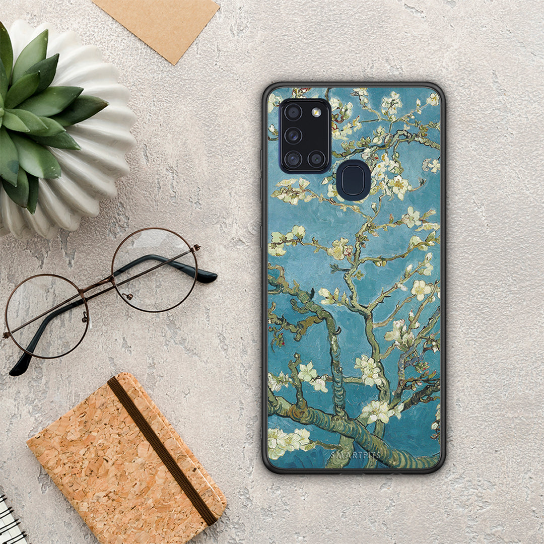Θήκη Samsung A21s White Blossoms από τη Smartfits με σχέδιο στο πίσω μέρος και μαύρο περίβλημα | Samsung A21s White Blossoms case with colorful back and black bezels