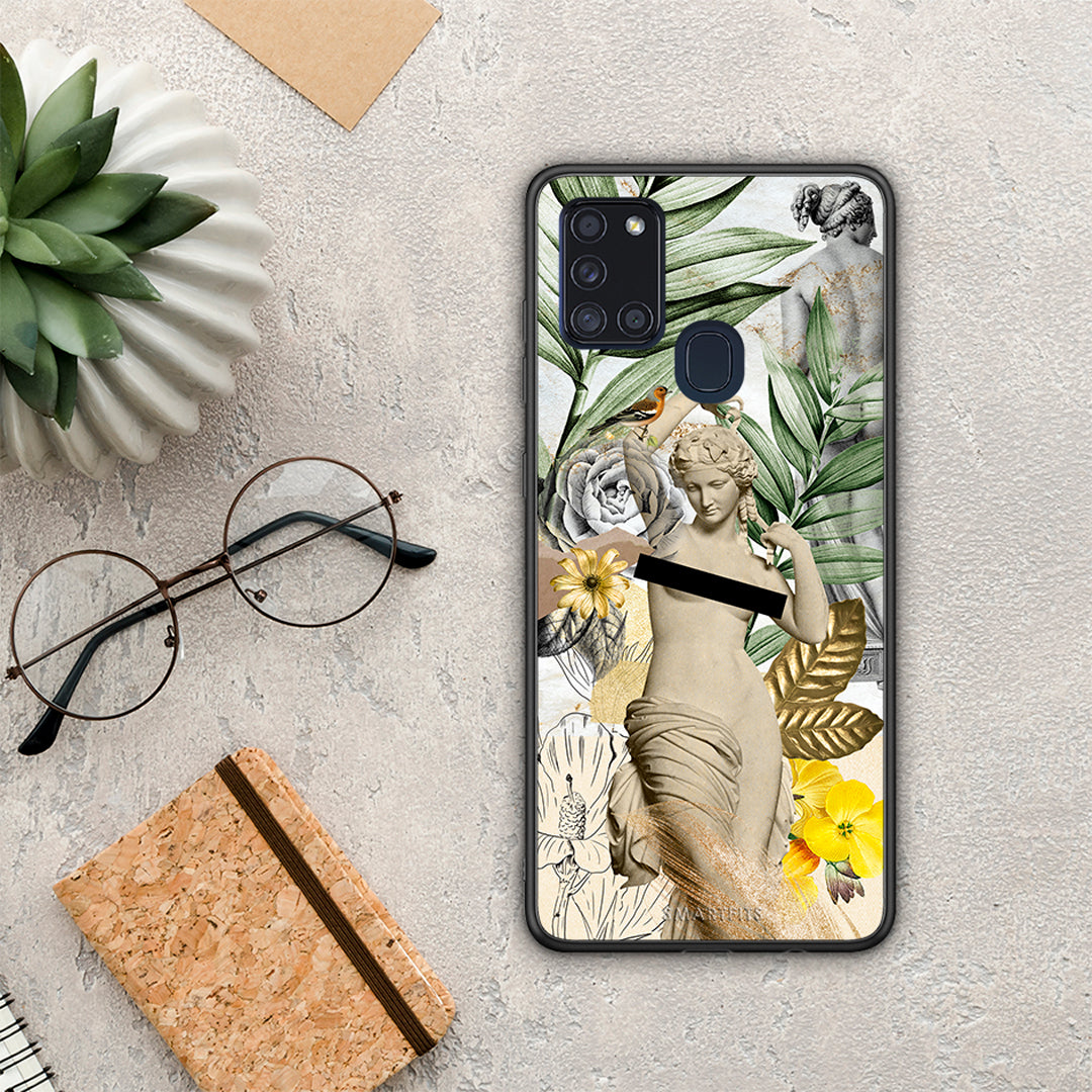 Θήκη Samsung A21s Woman Statue από τη Smartfits με σχέδιο στο πίσω μέρος και μαύρο περίβλημα | Samsung A21s Woman Statue case with colorful back and black bezels