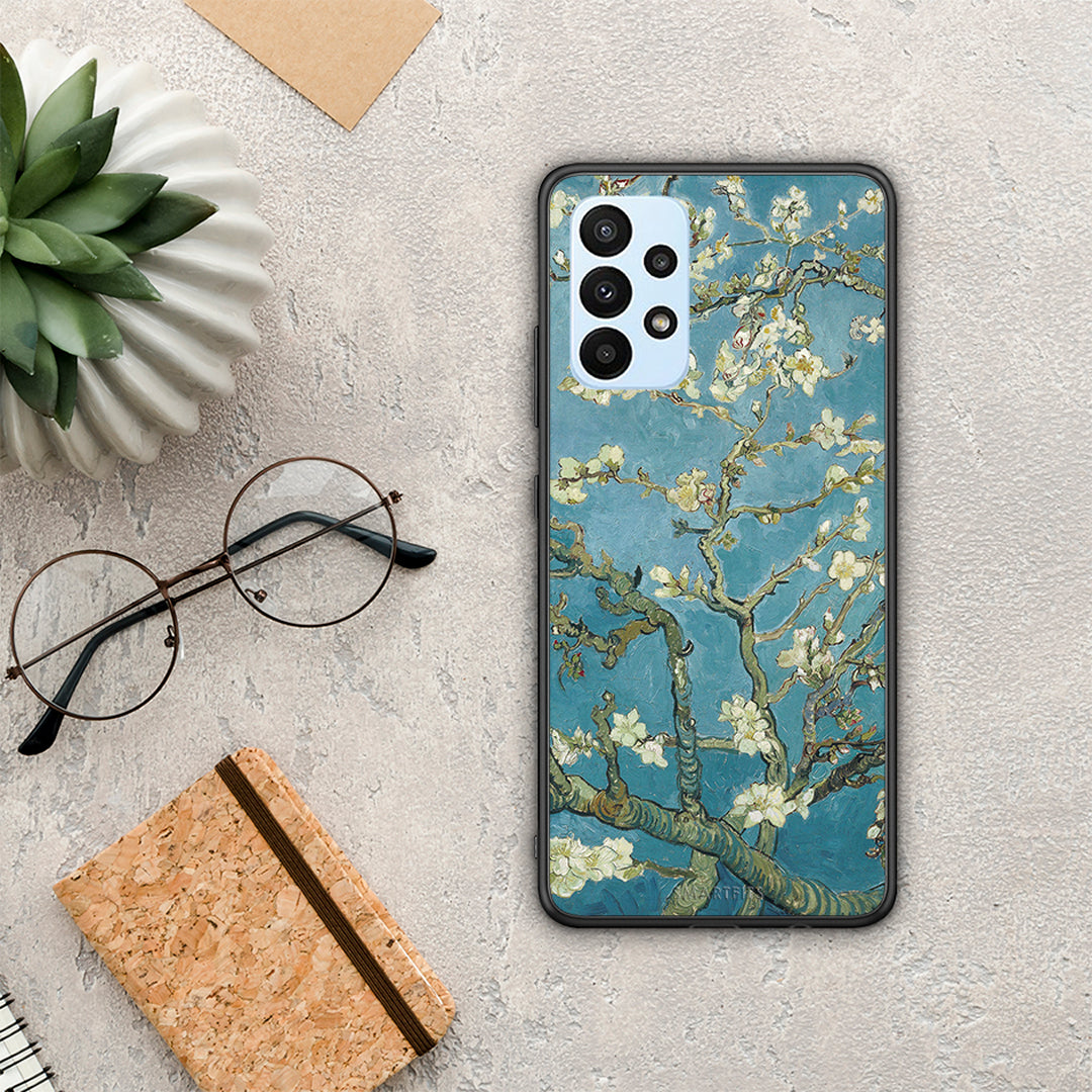 Θήκη Samsung A23 White Blossoms από τη Smartfits με σχέδιο στο πίσω μέρος και μαύρο περίβλημα | Samsung A23 White Blossoms case with colorful back and black bezels