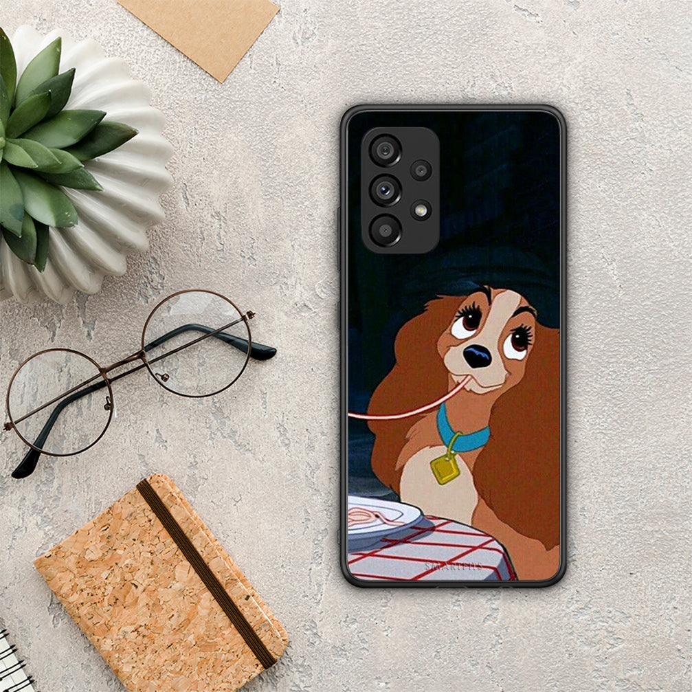 Θήκη Αγίου Βαλεντίνου Samsung A53 5G Lady And Tramp 2 από τη Smartfits με σχέδιο στο πίσω μέρος και μαύρο περίβλημα | Samsung A53 5G Lady And Tramp 2 case with colorful back and black bezels