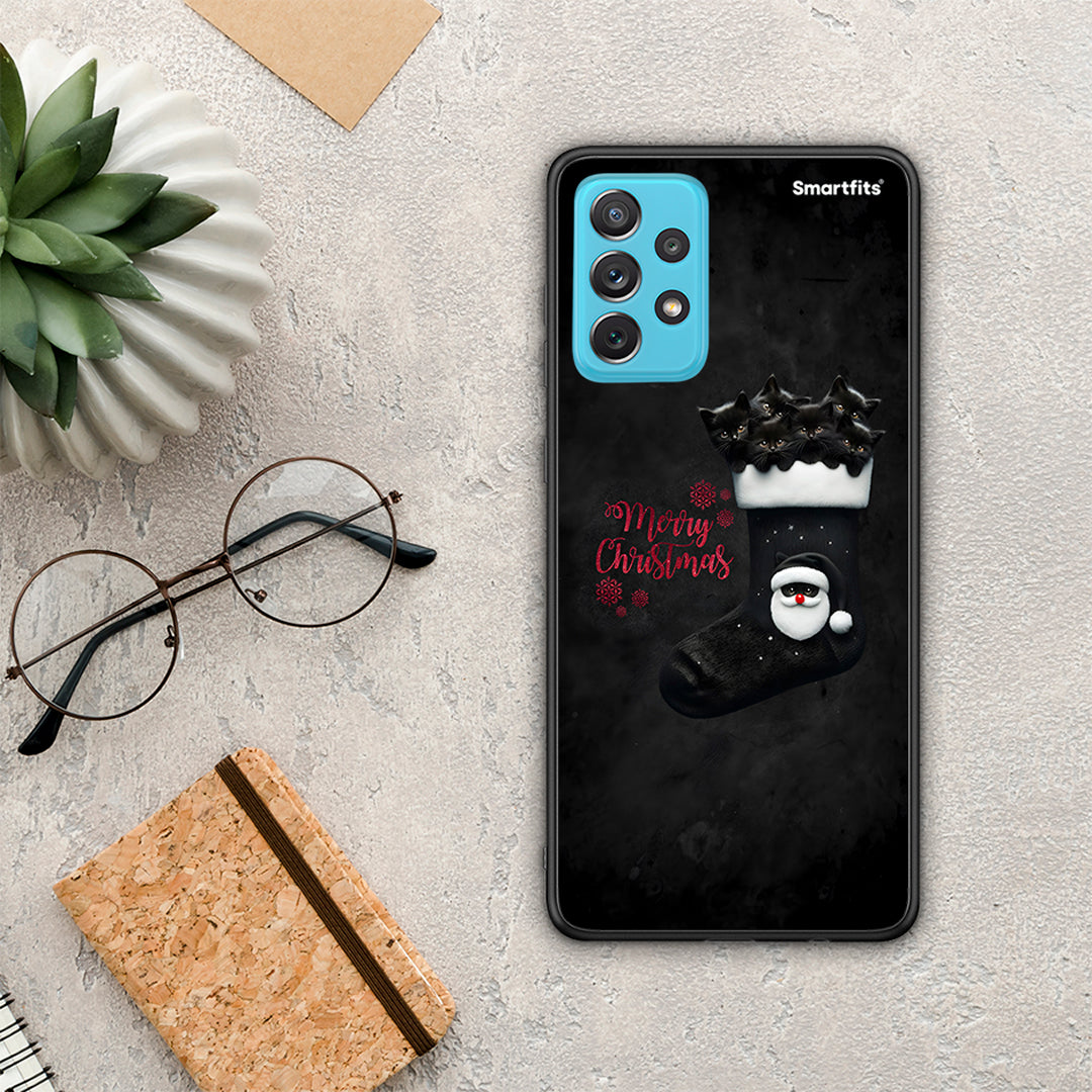 Θήκη Samsung A72 Merry Cat Christmas από τη Smartfits με σχέδιο στο πίσω μέρος και μαύρο περίβλημα | Samsung A72 Merry Cat Christmas case with colorful back and black bezels