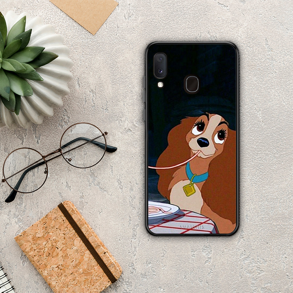 Θήκη Αγίου Βαλεντίνου Samsung Galaxy A30 Lady And Tramp 2 από τη Smartfits με σχέδιο στο πίσω μέρος και μαύρο περίβλημα | Samsung Galaxy A30 Lady And Tramp 2 case with colorful back and black bezels