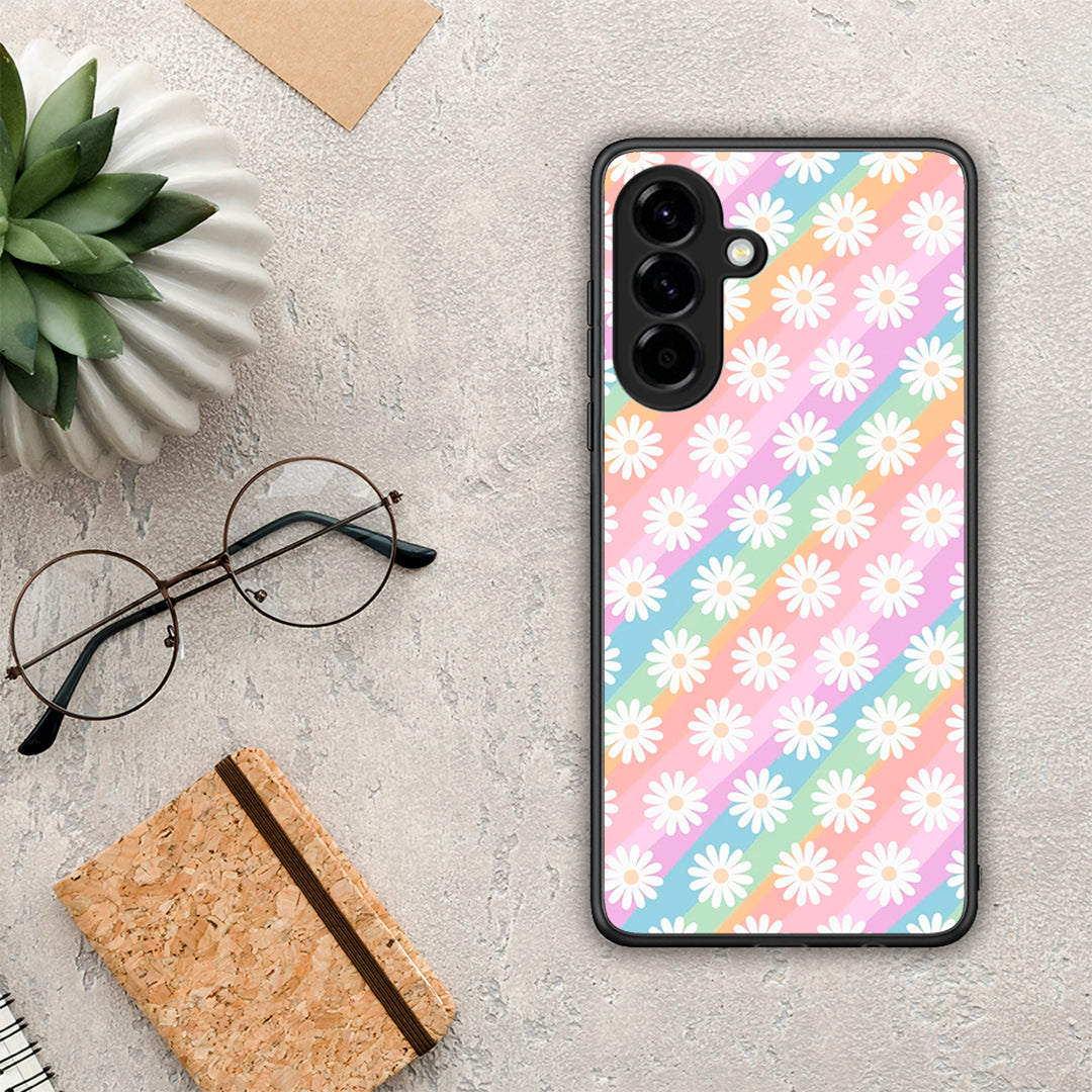 Θήκη Samsung Galaxy A56 White Daisies από τη Smartfits με σχέδιο στο πίσω μέρος και μαύρο περίβλημα | Samsung Galaxy A56 White Daisies case with colorful back and black bezels