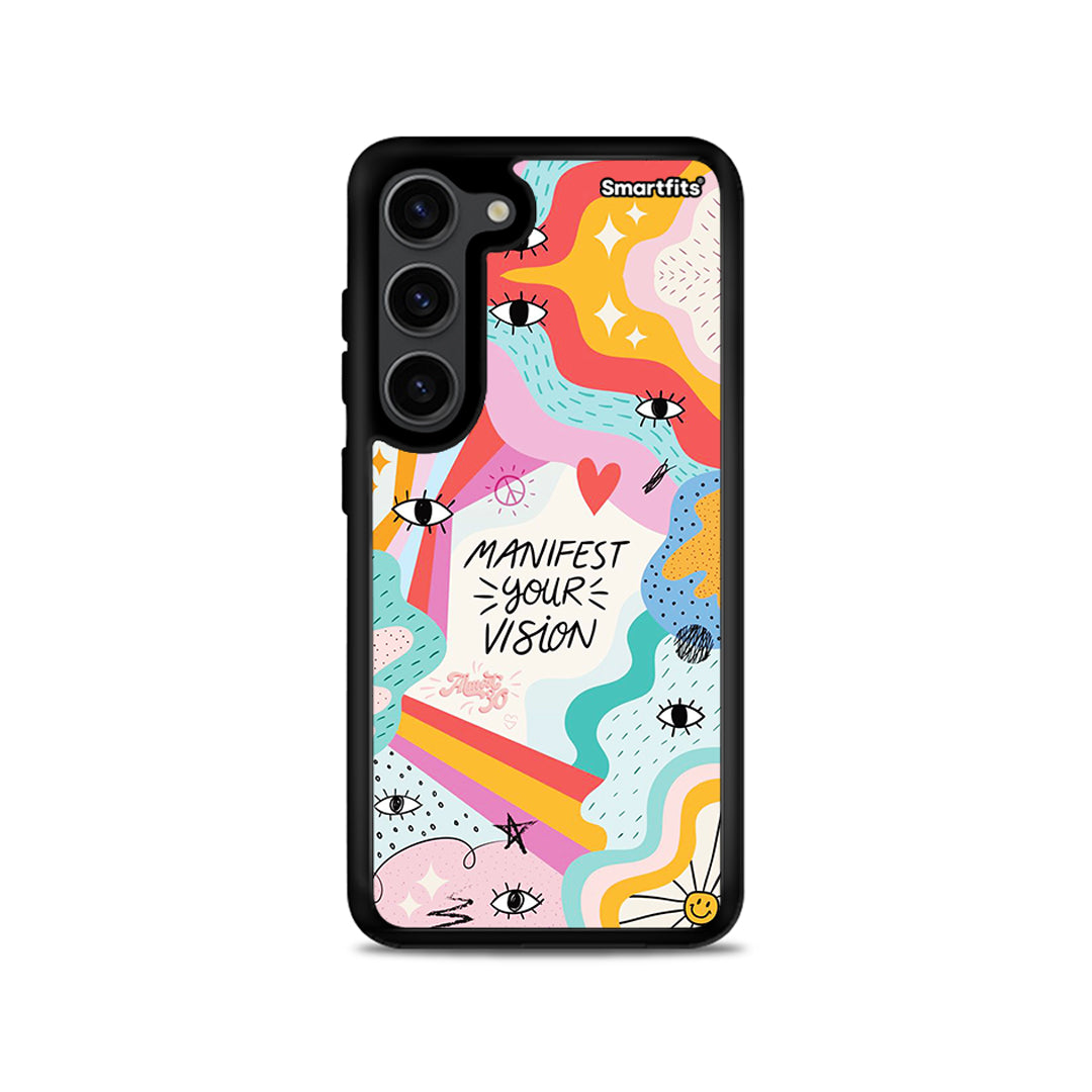 Θήκη Samsung Galaxy S23 Manifest Your Vision από τη Smartfits με σχέδιο στο πίσω μέρος και μαύρο περίβλημα | Samsung Galaxy S23 Manifest Your Vision Case with Colorful Back and Black Bezels