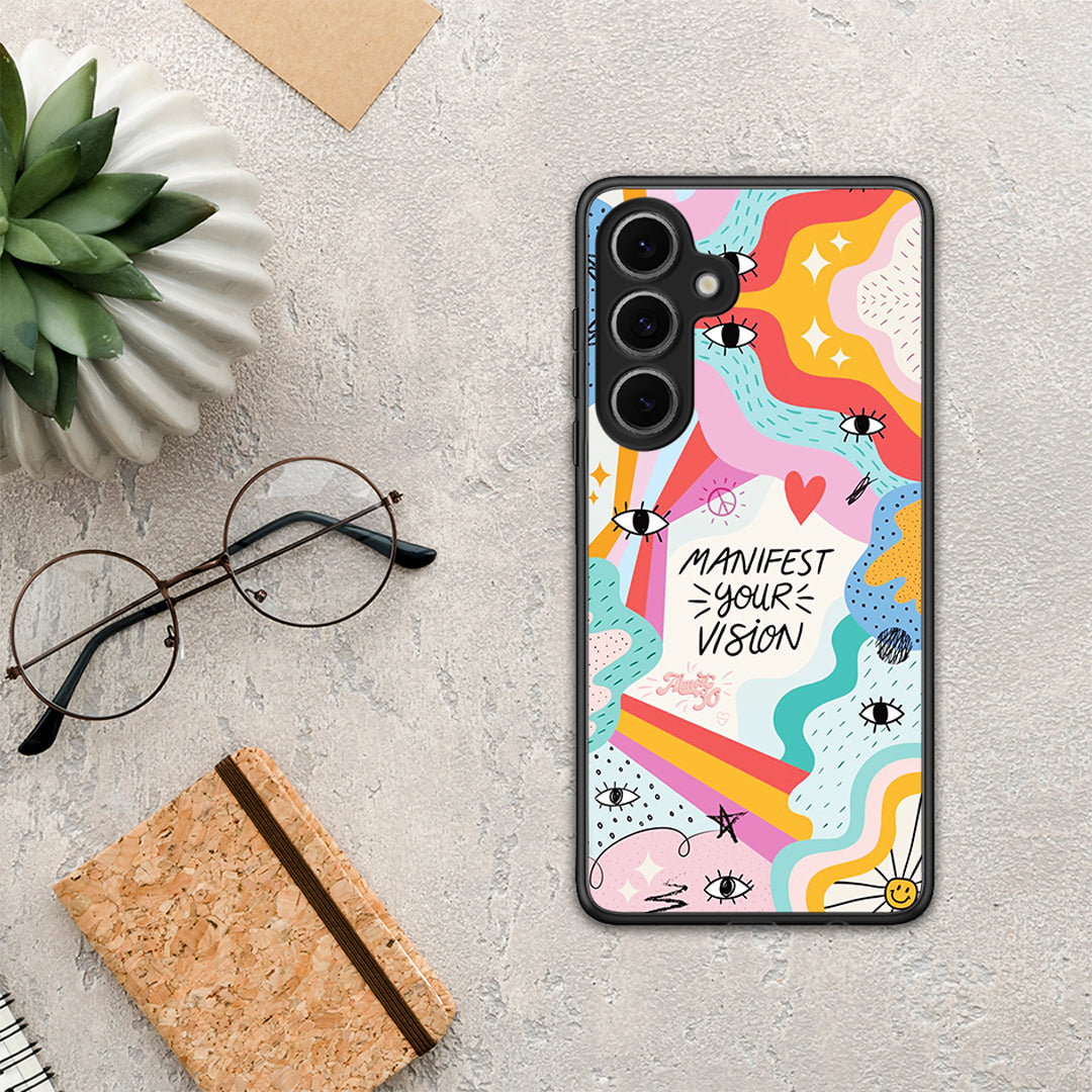 Θήκη Samsung Galaxy S24 FE Manifest Your Vision από τη Smartfits με σχέδιο στο πίσω μέρος και μαύρο περίβλημα | Samsung Galaxy S24 FE Manifest Your Vision case with colorful back and black bezels