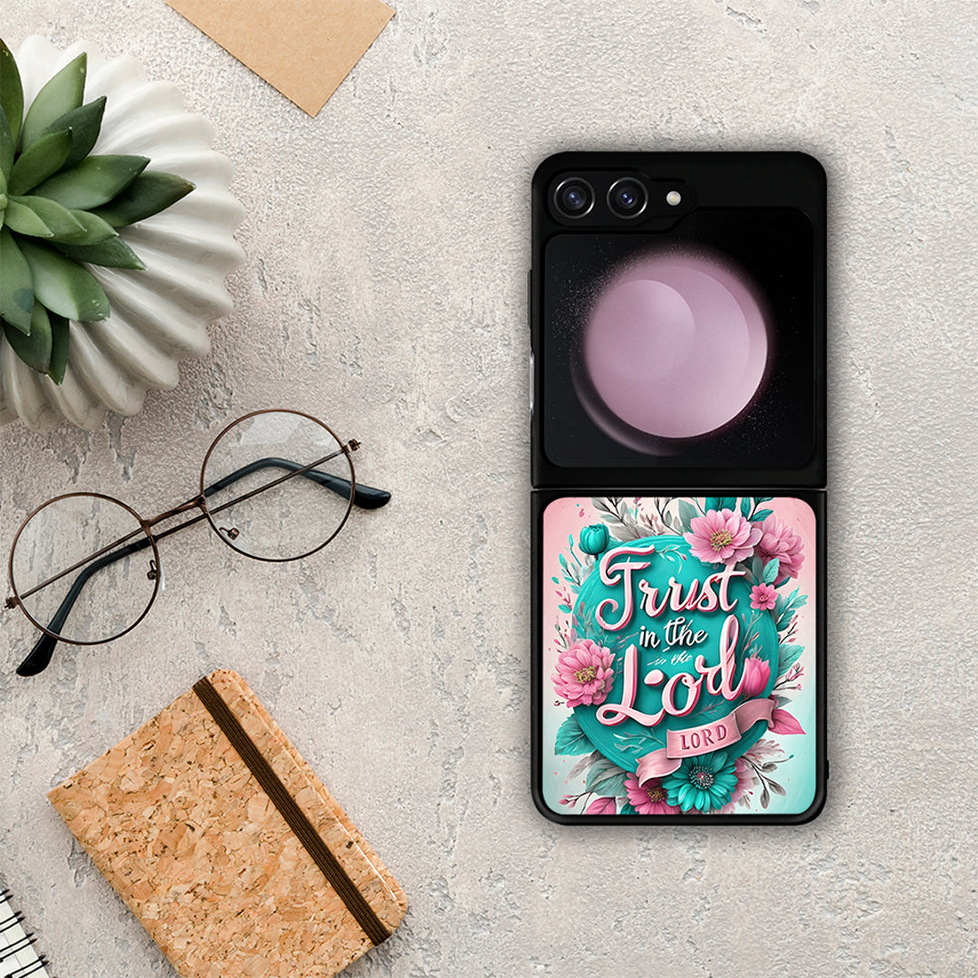 Θήκη Samsung Galaxy Z Flip5 Lord Trust από τη Smartfits με σχέδιο στο πίσω μέρος και μαύρο περίβλημα | Samsung Galaxy Z Flip5 Lord Trust case with colorful back and black bezels