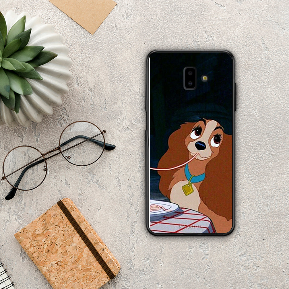 Θήκη Αγίου Βαλεντίνου Samsung J6+ Lady And Tramp 2 από τη Smartfits με σχέδιο στο πίσω μέρος και μαύρο περίβλημα | Samsung J6+ Lady And Tramp 2 case with colorful back and black bezels