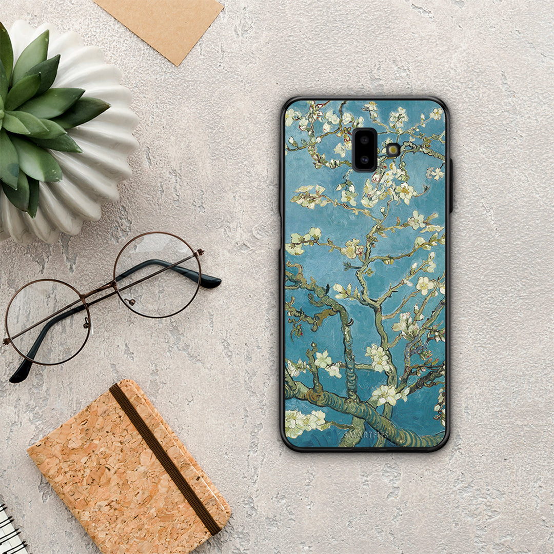 Θήκη Samsung J6+ White Blossoms από τη Smartfits με σχέδιο στο πίσω μέρος και μαύρο περίβλημα | Samsung J6+ White Blossoms case with colorful back and black bezels