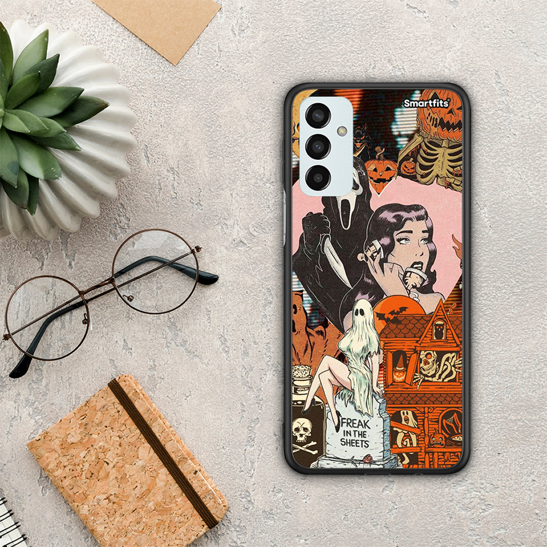 Θήκη Samsung M23 Halloween Collage από τη Smartfits με σχέδιο στο πίσω μέρος και μαύρο περίβλημα | Samsung M23 Halloween Collage case with colorful back and black bezels