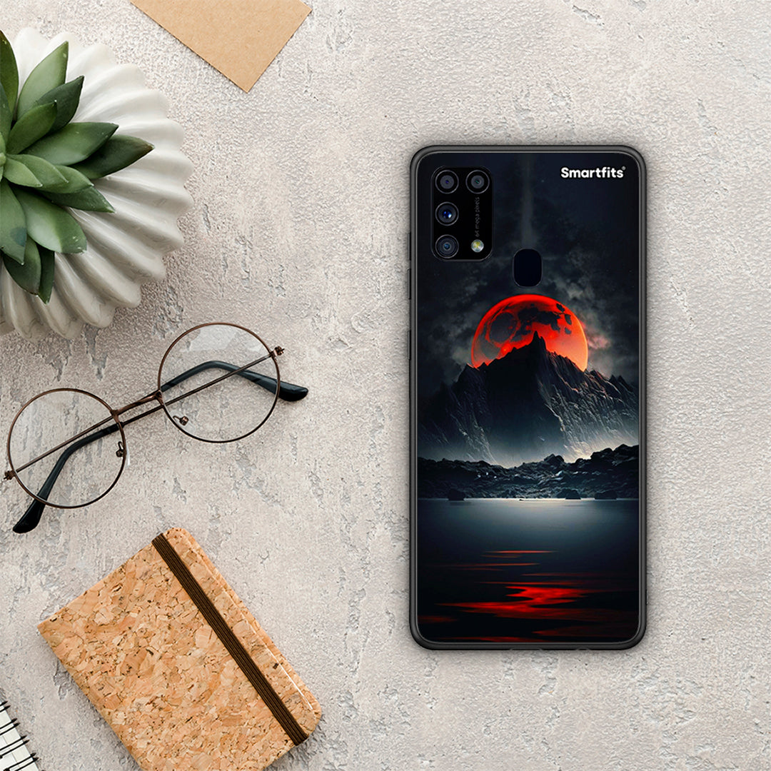 Θήκη Samsung M31 Red Full Moon από τη Smartfits με σχέδιο στο πίσω μέρος και μαύρο περίβλημα | Samsung M31 Red Full Moon case with colorful back and black bezels