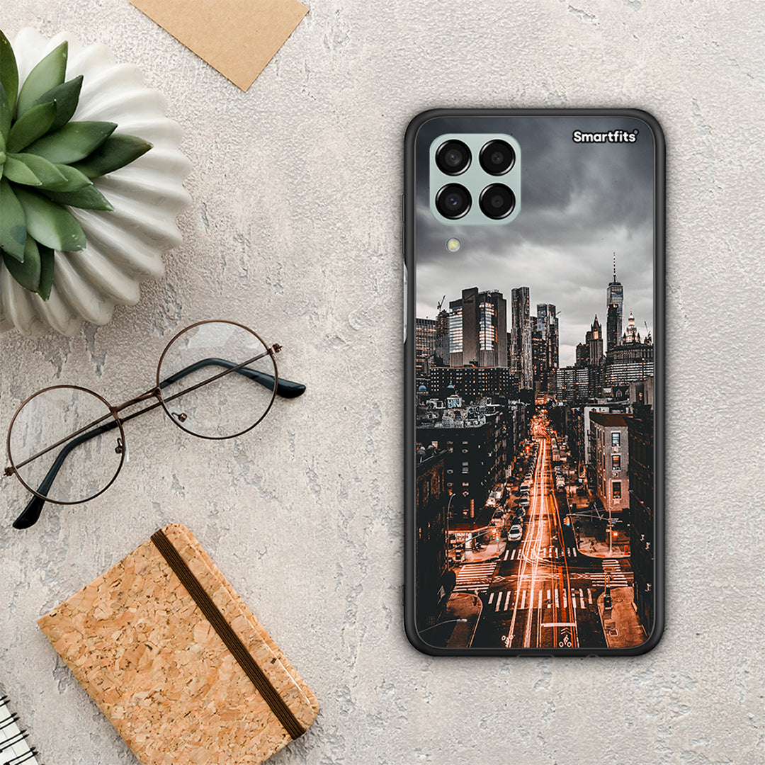 Θήκη Samsung M33 City Lights από τη Smartfits με σχέδιο στο πίσω μέρος και μαύρο περίβλημα | Samsung M33 City Lights case with colorful back and black bezels