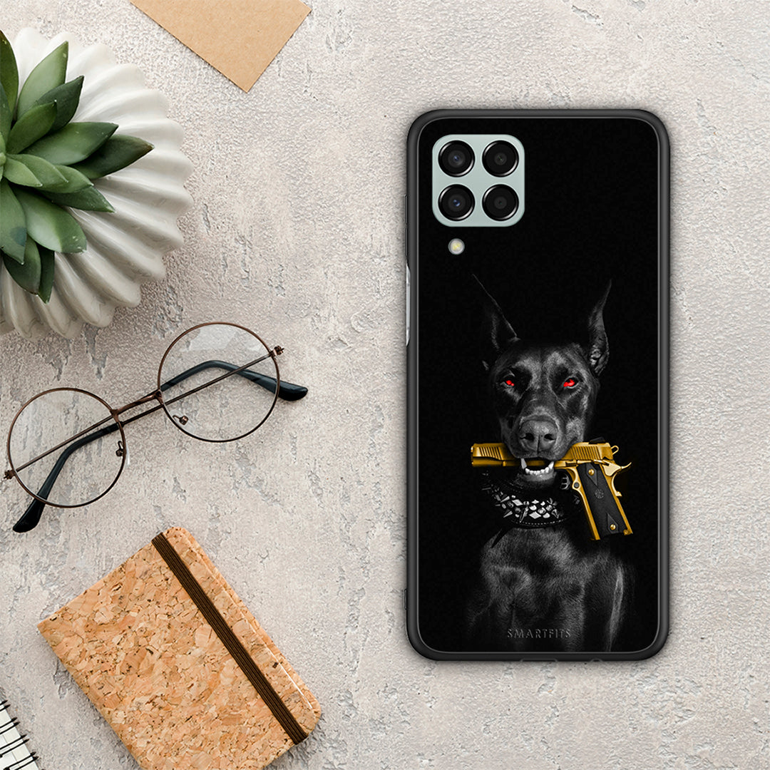 Θήκη Αγίου Βαλεντίνου Samsung M33 Golden Gun από τη Smartfits με σχέδιο στο πίσω μέρος και μαύρο περίβλημα | Samsung M33 Golden Gun case with colorful back and black bezels