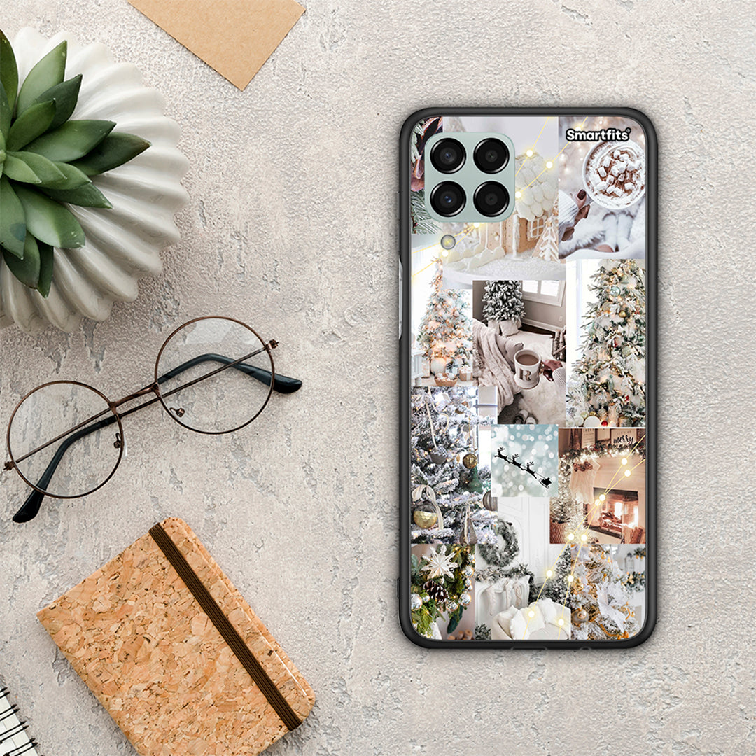 Θήκη Samsung M33 White Christmas από τη Smartfits με σχέδιο στο πίσω μέρος και μαύρο περίβλημα | Samsung M33 White Christmas case with colorful back and black bezels