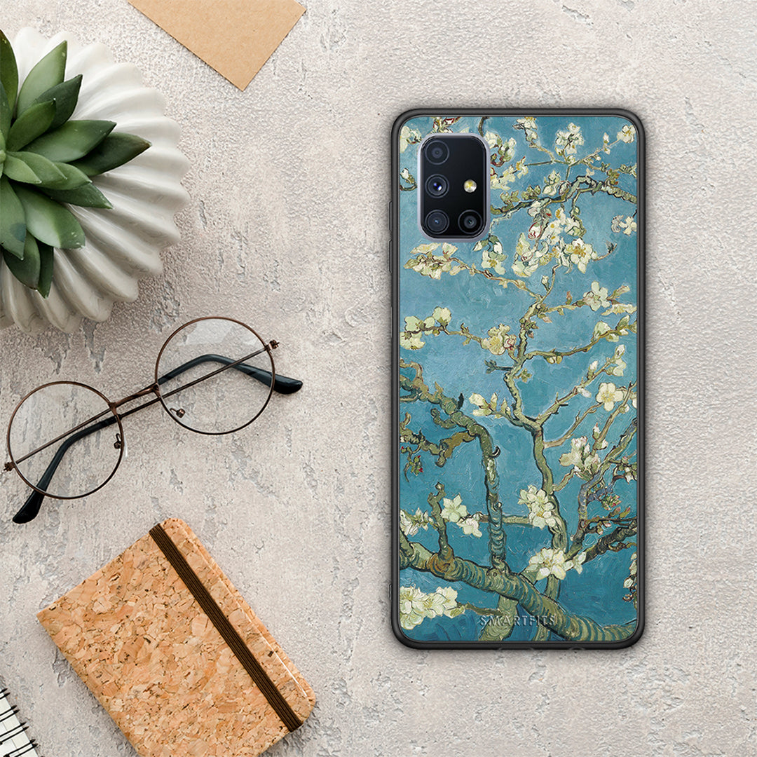 Θήκη Samsung Galaxy M51 White Blossoms από τη Smartfits με σχέδιο στο πίσω μέρος και μαύρο περίβλημα | Samsung Galaxy M51 White Blossoms case with colorful back and black bezels