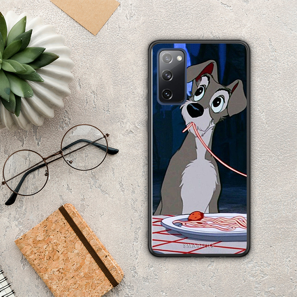 Θήκη Αγίου Βαλεντίνου Samsung S20 FE Lady And Tramp 1 από τη Smartfits με σχέδιο στο πίσω μέρος και μαύρο περίβλημα | Samsung S20 FE Lady And Tramp 1 case with colorful back and black bezels