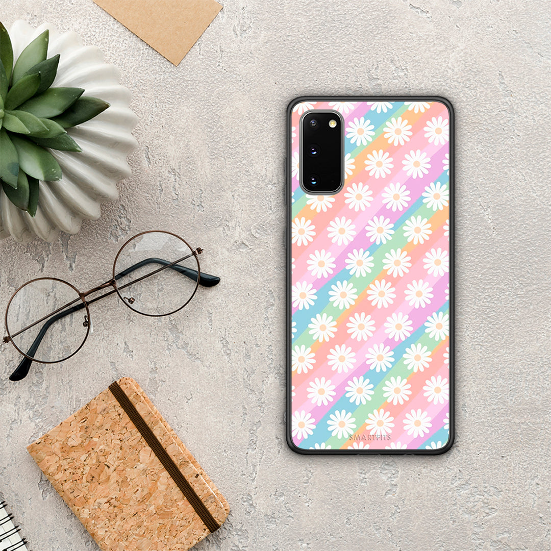 Θήκη Samsung S20 White Daisies από τη Smartfits με σχέδιο στο πίσω μέρος και μαύρο περίβλημα | Samsung S20 White Daisies case with colorful back and black bezels