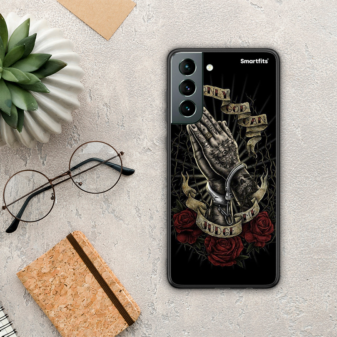 Θήκη Samsung S21 Judge By God από τη Smartfits με σχέδιο στο πίσω μέρος και μαύρο περίβλημα | Samsung S21 Judge By God case with colorful back and black bezels