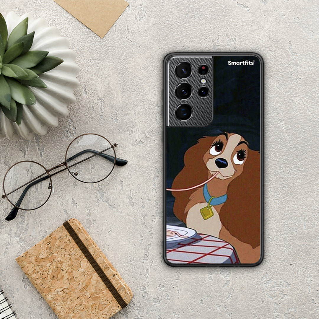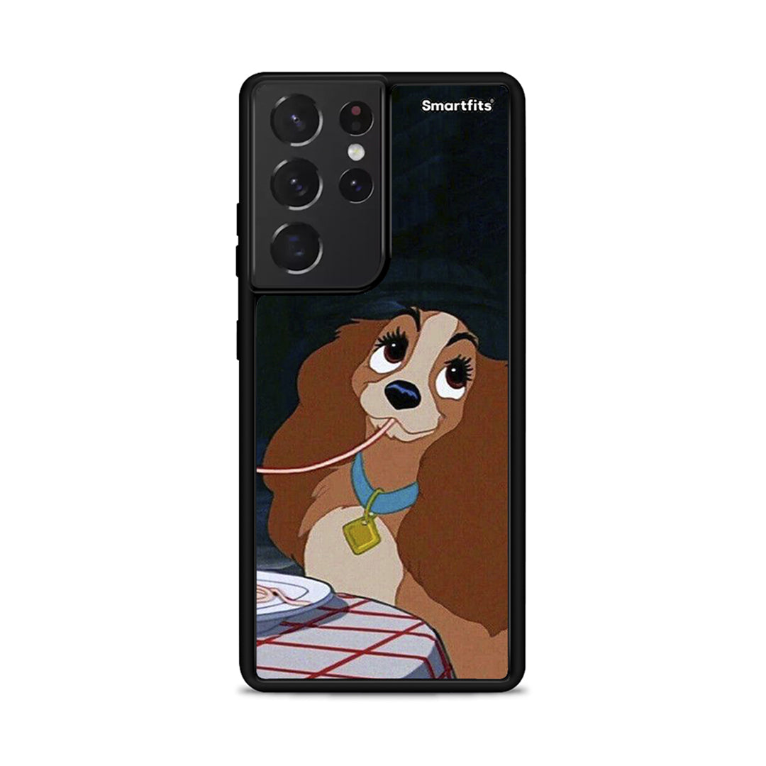 Θήκη Αγίου Βαλεντίνου Samsung S21 Ultra Lady And Tramp 2 από τη Smartfits με σχέδιο στο πίσω μέρος και μαύρο περίβλημα | Samsung S21 Ultra Lady And Tramp 2 case with colorful back and black bezels
