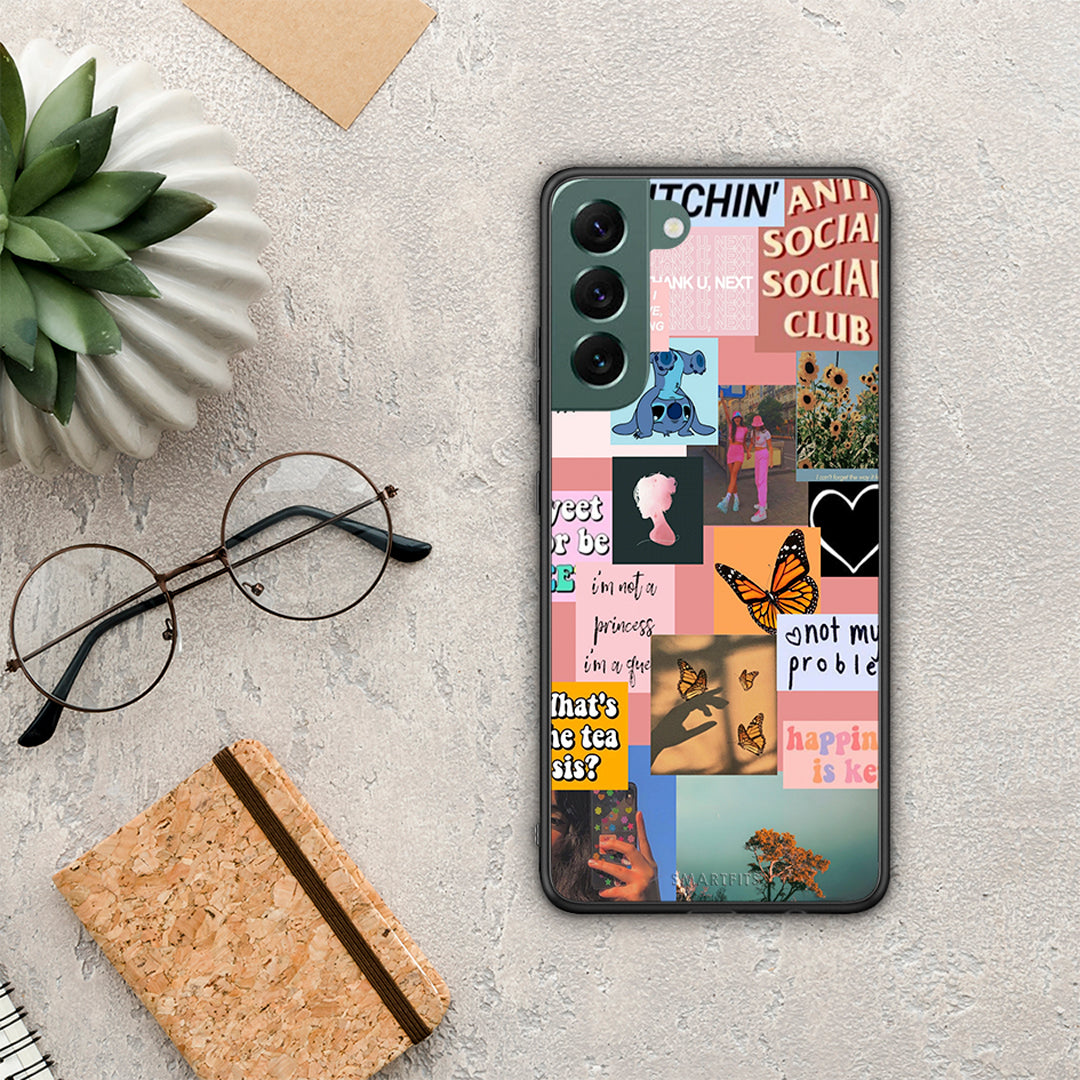 Θήκη Αγίου Βαλεντίνου Samsung S22 Plus Collage Bitchin από τη Smartfits με σχέδιο στο πίσω μέρος και μαύρο περίβλημα | Samsung S22 Plus Collage Bitchin case with colorful back and black bezels