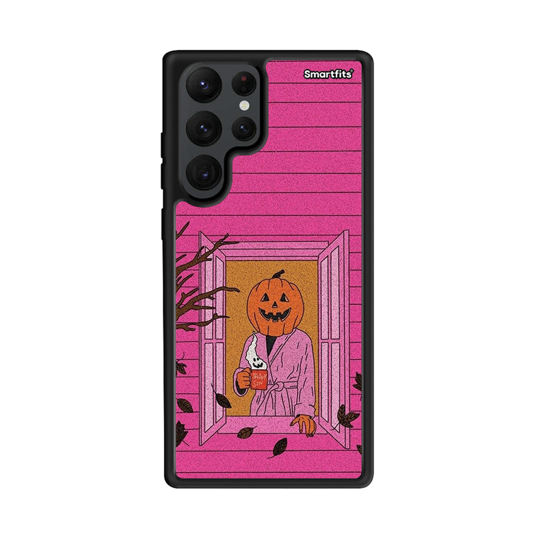 Θήκη Samsung S22 Ultra Halloween Pumpkin Lady από τη Smartfits με σχέδιο στο πίσω μέρος και μαύρο περίβλημα | Samsung S22 Ultra Halloween Pumpkin Lady case with colorful back and black bezels