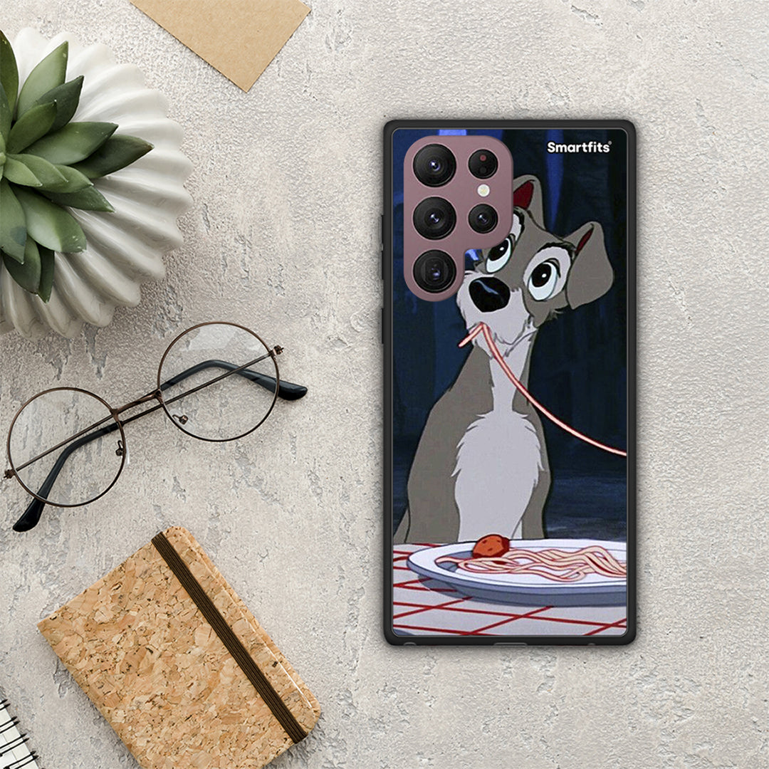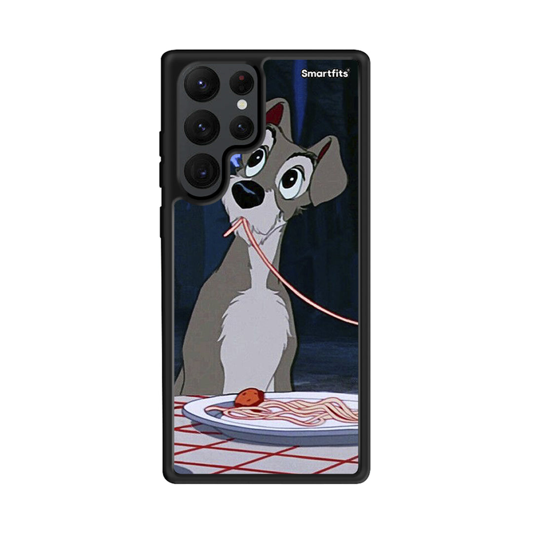 Θήκη Αγίου Βαλεντίνου Samsung S22 Ultra Lady And Tramp 1 από τη Smartfits με σχέδιο στο πίσω μέρος και μαύρο περίβλημα | Samsung S22 Ultra Lady And Tramp 1 case with colorful back and black bezels