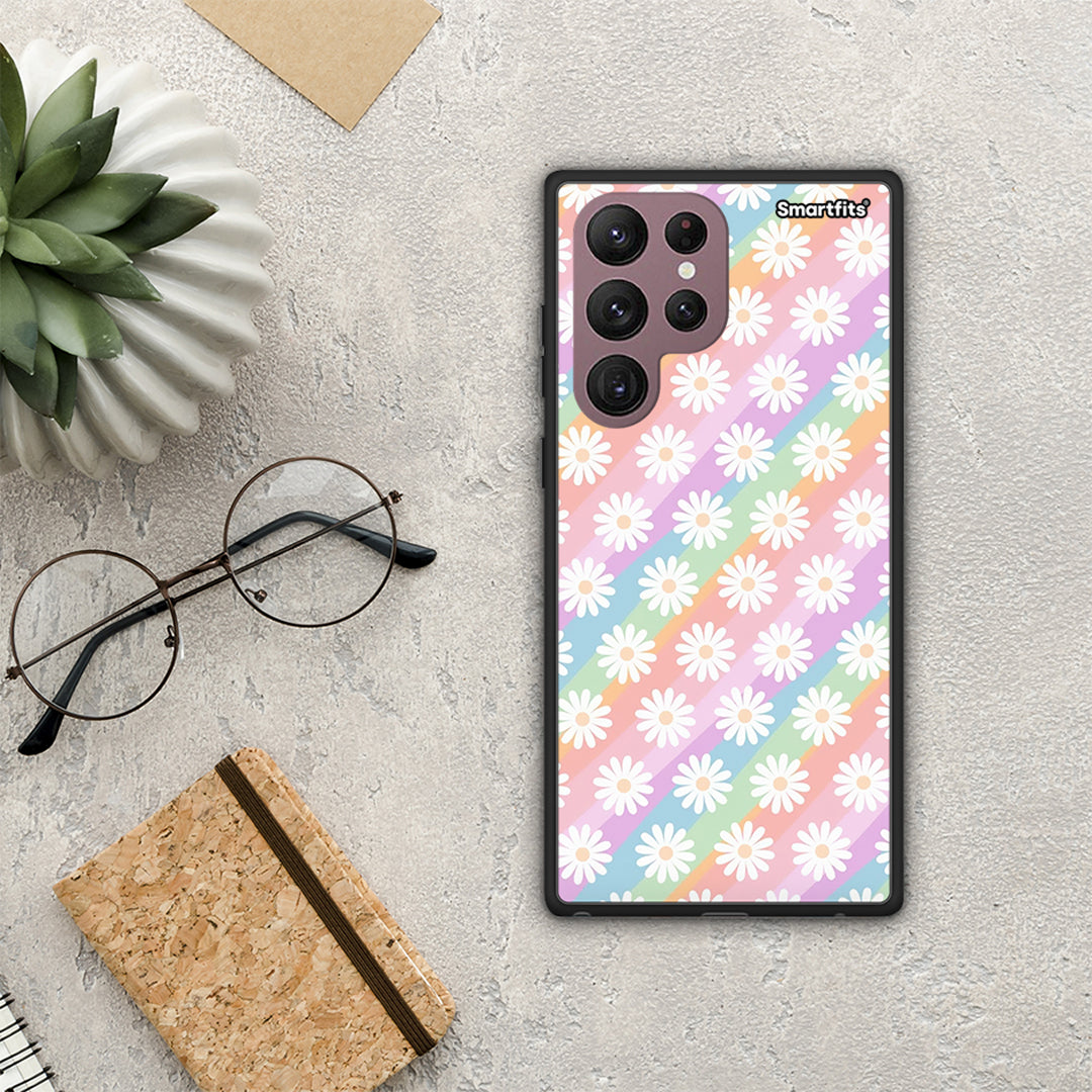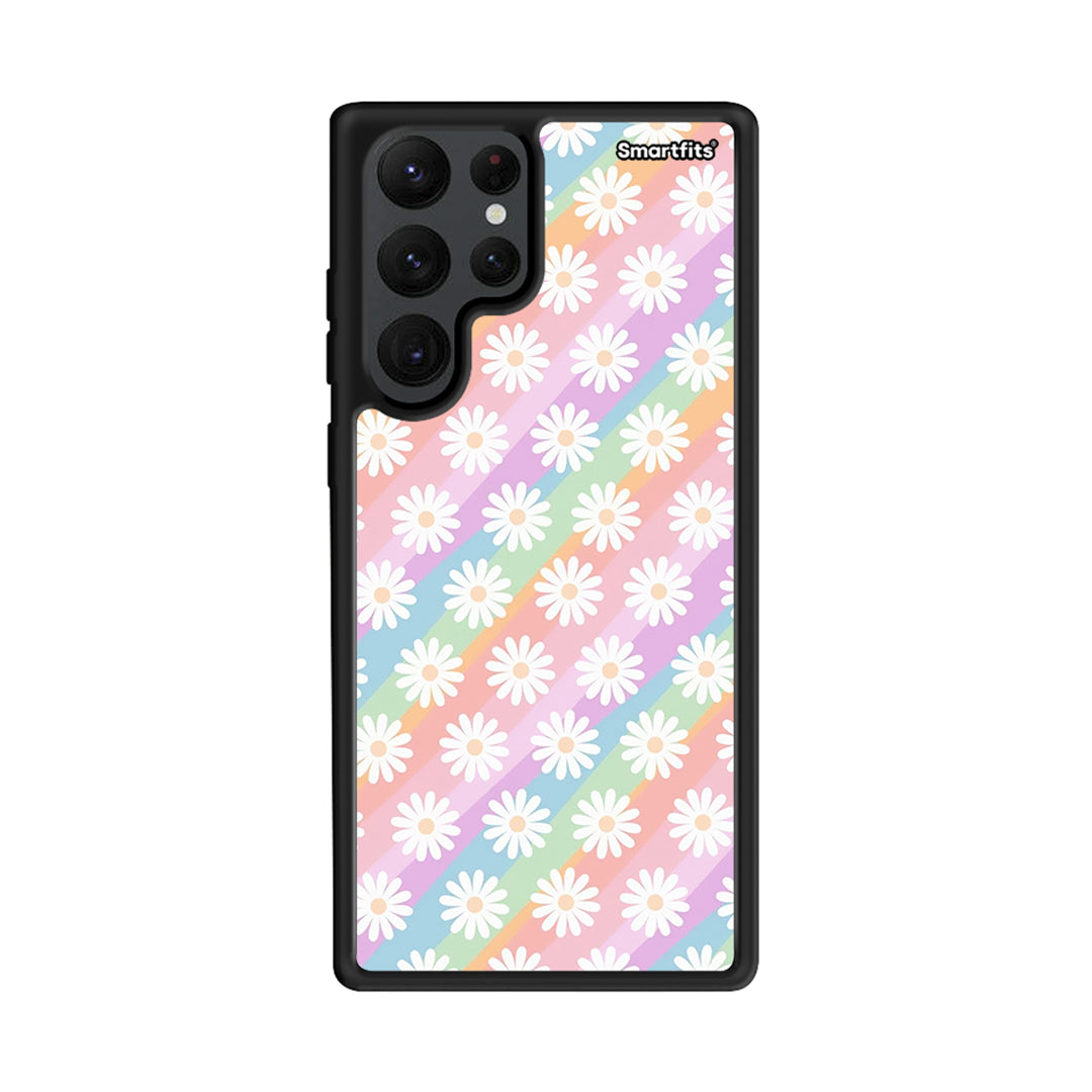 Θήκη Samsung S22 Ultra White Daisies από τη Smartfits με σχέδιο στο πίσω μέρος και μαύρο περίβλημα | Samsung S22 Ultra White Daisies case with colorful back and black bezels
