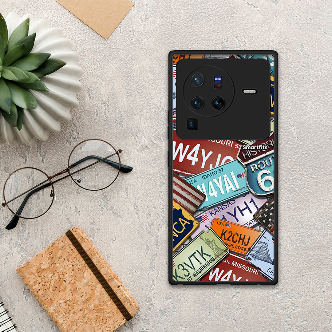 Θήκη Vivo X80 Pro 5G Car Plates από τη Smartfits με σχέδιο στο πίσω μέρος και μαύρο περίβλημα | Vivo X80 Pro 5G Car Plates case with colorful back and black bezels