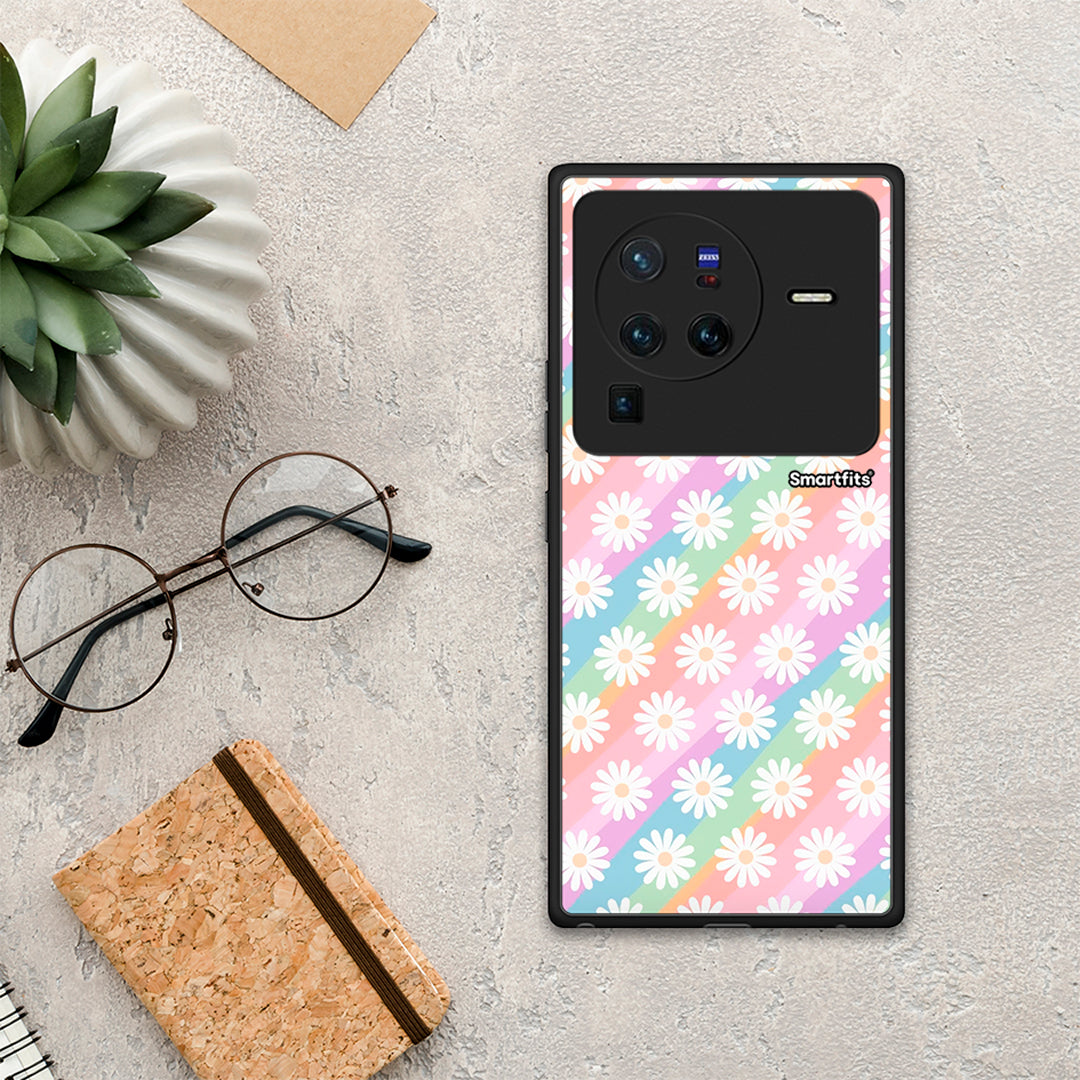 Θήκη Vivo X80 Pro 5G White Daisies από τη Smartfits με σχέδιο στο πίσω μέρος και μαύρο περίβλημα | Vivo X80 Pro 5G White Daisies case with colorful back and black bezels