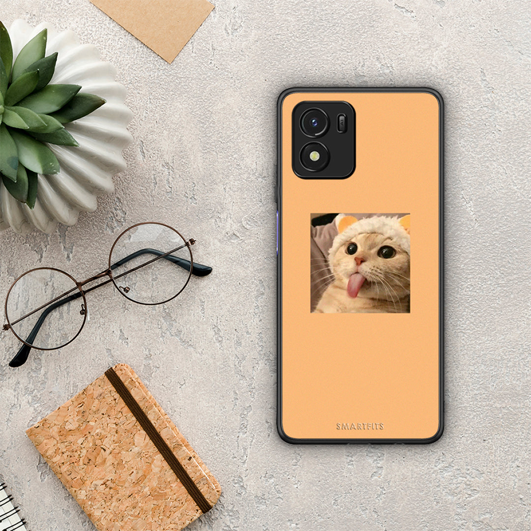 Θήκη Vivo Y01 / Y15s Cat Tongue από τη Smartfits με σχέδιο στο πίσω μέρος και μαύρο περίβλημα | Vivo Y01 / Y15s Cat Tongue case with colorful back and black bezels